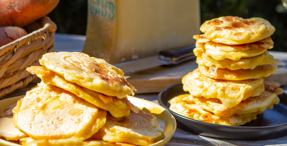 Blinis au Beaufort, carottes & curry